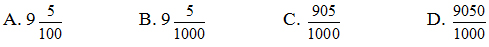 4) Số thập phân 9,005 viết dưới dạng hỗn số là: