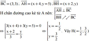 Cho tam giác ABC có A(–4; 5), B(–2; 0), C(1; 3). Biết AH là đường cao của ΔABC(H ∈ BC). Tìm tọa độ H.