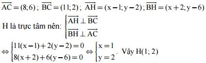 Cho tam giác ABC có A(1; 2), B(–2; 6), C(9; 8). Tìm tọa độ trực tâm H của ΔABC.