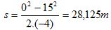 - Tìm được quãng đường xe đi được từ lúc hãm phanh đến lúc dừng lại: s = (v2 - vo2)/2a
