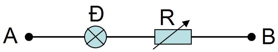 | Câu VI. (2,0 điểm). Cho đoạn mạch điện như hình vẽ. Hiệu điện thế giữa hai đầu đoạn mạch là UAB = 15 (V), trên đèn có ghi: 12V – 6W, điện trở dây nối không đáng kể. Xác định giá trị điện trở của biến trở để đèn sáng bình thường. | ![]() |