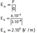 - Đặt tại điểm N một điện tích điểm q = 3.10-8 C, điện tích q chịu một lực đẩy có độ lớn F = 6.10-3 (N). Tính độ lớn cường độ điện trường tại điểm N.