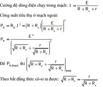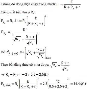 - Cho mạch điện như hình vẽ, biết nguồn có suất điện động E = 12(V), điện trở trong r = 2(Ω), R = 0,5 (Ω), điện trở dây nối không đáng kể. Biến trở Rx có giá trị bao nhiêu để công suất tiêu thụ điện ở Rx là lớn nhất? Tính công suất lớn nhất đó?