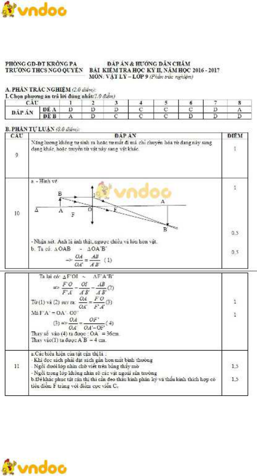 Đề kiểm tra học kì 2 lớp 9 môn Vật lý trường THCS Ngô Quyền, Krông Pa năm học 2016 - 2017