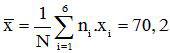 | Giá trị (x) | 50 | 62 | 75 | 78 | 80 | 90 | |