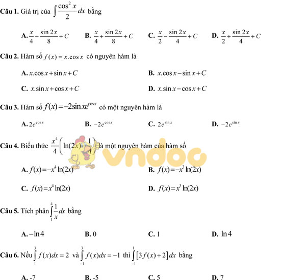 Đề kiểm tra học kì 2 môn Toán lớp 12 trường THPT Nho Quan A, Ninh Bình năm học 2016 - 2017 (Đề 03)