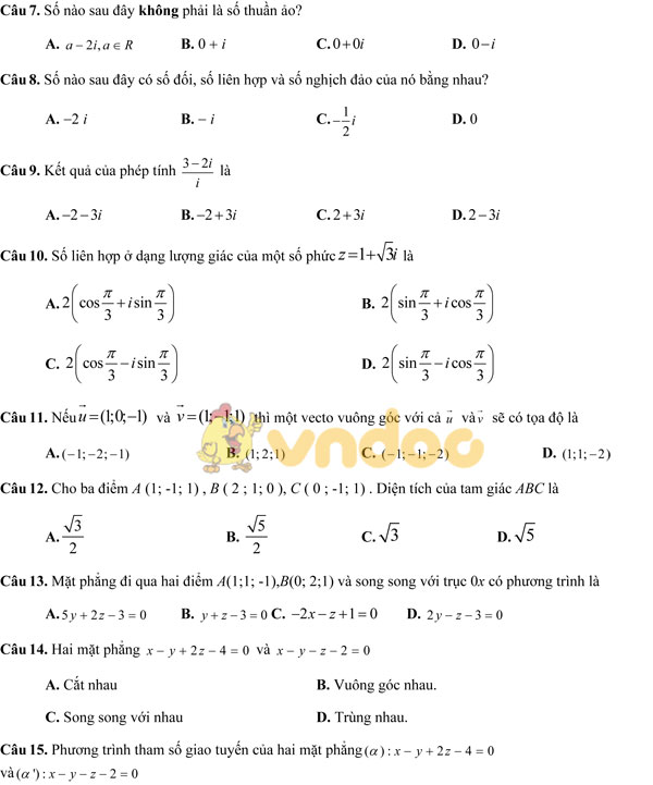 Đề kiểm tra học kì 2 môn Toán lớp 12 có đáp án