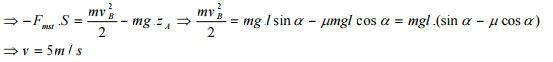 Một vật trượt không vận tốc đầu từ đỉnh (điểm A) của mặt phẳng nghiêng dài l =10 m hợp với mặt phẳng ngang một góc α=30o, đến cuối mặt phẳng nghiêng (điểm B) vật tiếp tục chuyển động trên mặt phẳng ngang. Tính vận tốc của vật khi đến cuối mặt phẳng nghiêng. Cho biết hệ số ma sát giữa vật với mặt phẳng nghiêng μ = 0,433. Lấy g =10m/s2