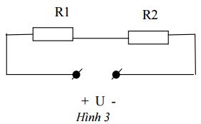 13. Cho mạch điện như hình 3. U = 9 V, R1 = 1,5 Ω và hiệu điện thế hai đầu điện trở R2 là 6V. Cường độ dòng điện trong mạch là