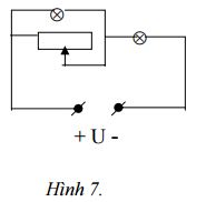 21. Hai bóng đèn Đ1 ghi 6 V- 3 W và Đ2 ghi 6 V - 4,5 W được mắc vào mạch điện như hình 7, biến trở mắc song song với Đ1. Nguồn có hiệu điện thế không đổi U =12V.