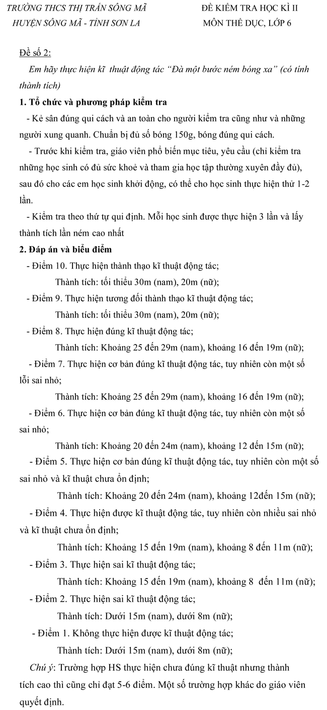 Đề kiểm tra học kì II lớp 6 môn Thể dục trường THCS Thị Trấn Sông Mã - Sơn La ( Đề 1)
