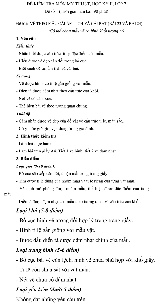 Đề kiểm tra học kì II môn Mỹ thuật dành cho học sinh THCS lớp 7 - Đề số 1