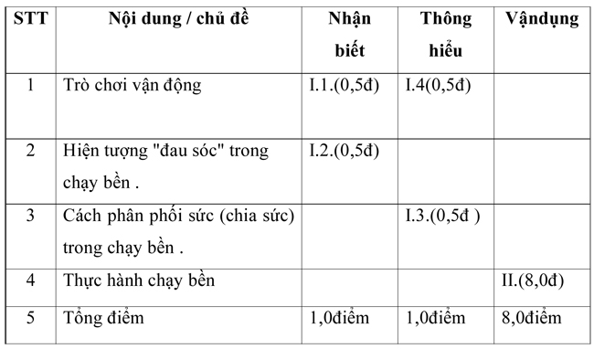 - Bảng thành tích và biểu điểm được tính theo chuẩn của sách giáo viên. Tuỳ tình hình thực tế của từng trường mà các đồng chí giáo viên có thể thống nhất và điều chỉnh cho phù hợp.