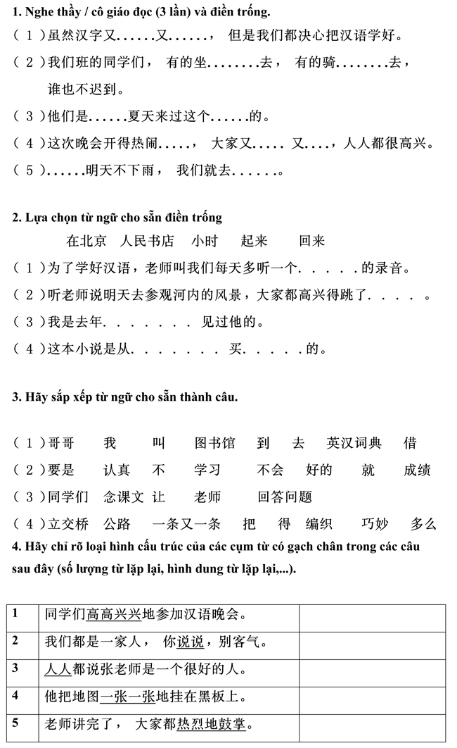 Đề kiểm tra tiếng Trung