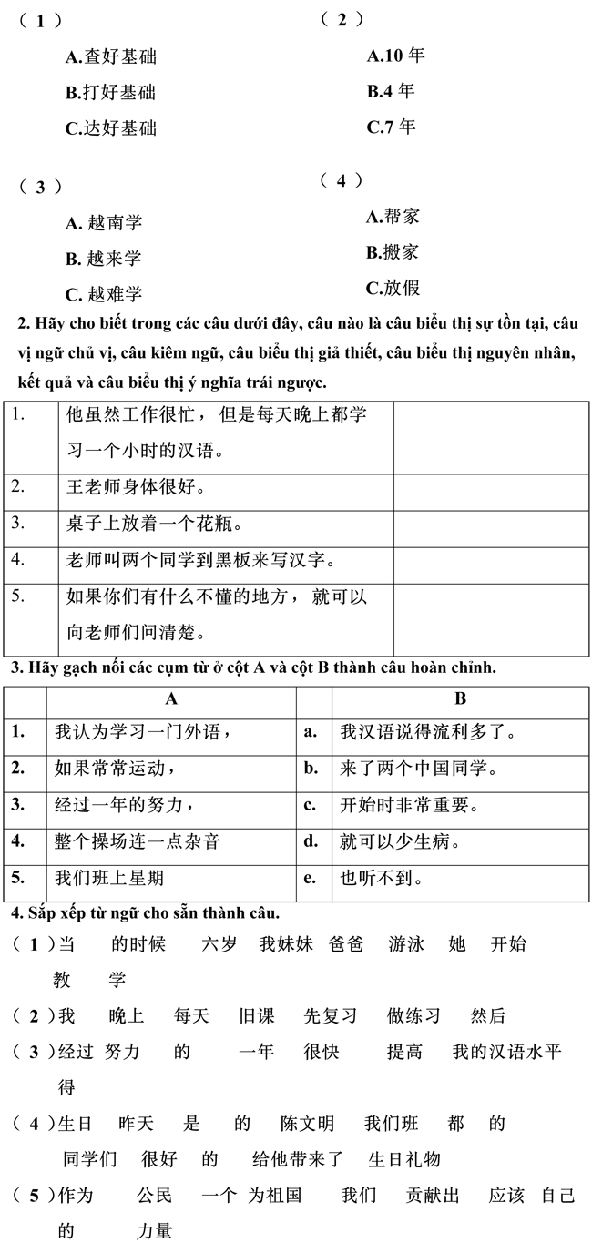 Đề kiểm tra học kì II lớp 8 môn tiếng Trung Quốc - Đề 2