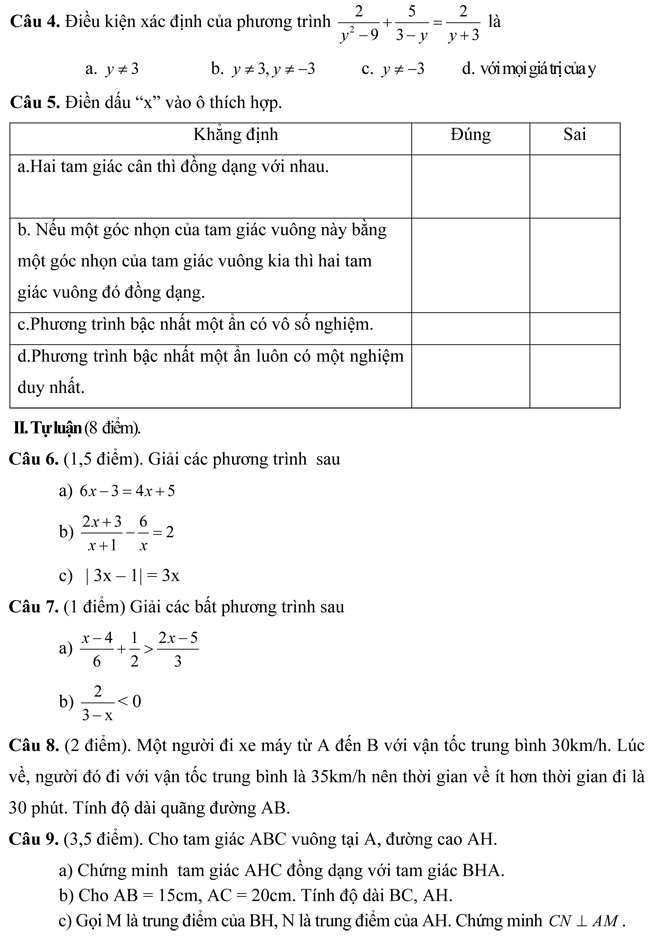 Đề thi học kì 2 lớp 8 môn Toán