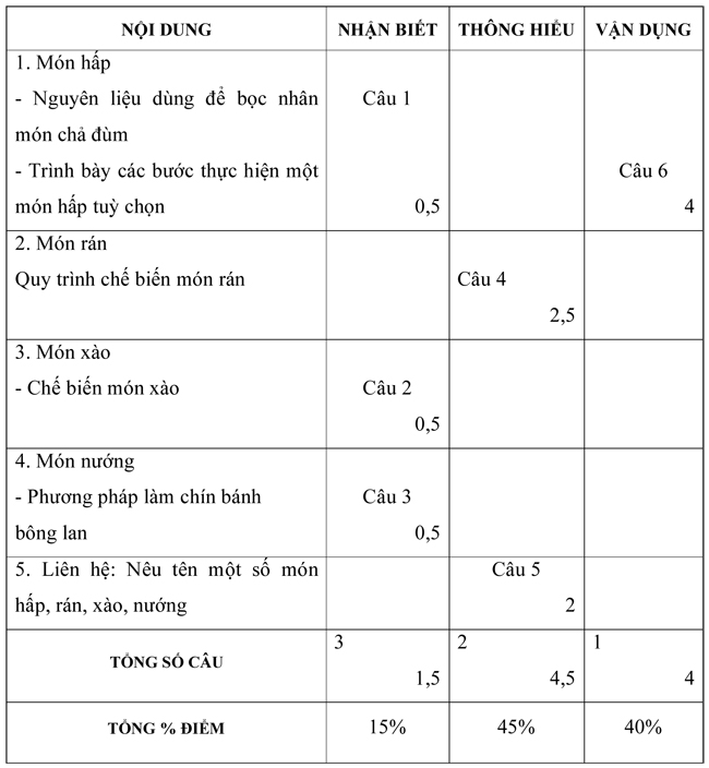 A. MA TRẬN (BẢNG HAI CHIỀU) MODUN NẤU ĂN