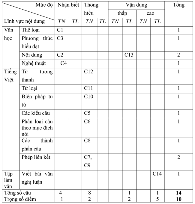 Mỗi câu trắc nghiệm: 0, 25 điểm. Câu 13 được 2 điểm; câu 14 được 5 điểm