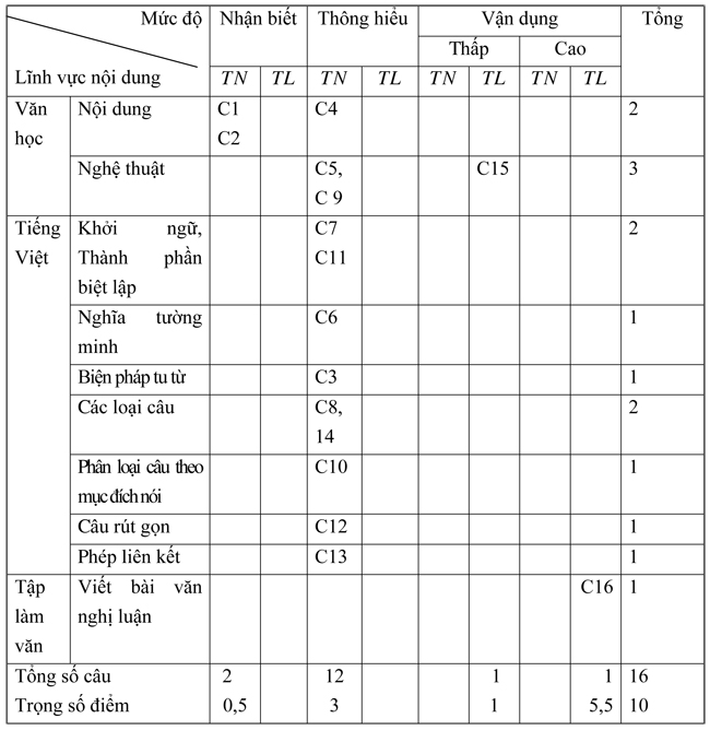 Mỗi câu trắc nghiệm: 0, 25 điểm. Câu 15 được 1 điểm; câu 16 được 5,5 điểm