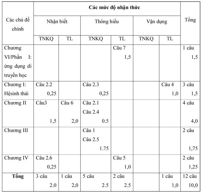 ĐỀ KIỂM TRA MÔN SINH HỌC, HỌC KÌ II, LỚP 9