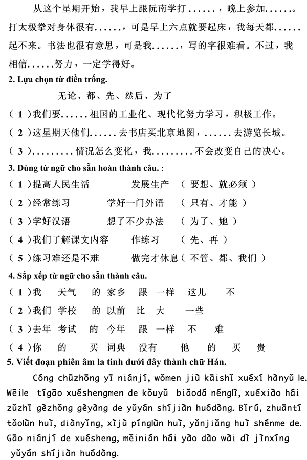 Dưới đây là mẫu đề thi kiểm tra học kì II môn tiếng Trung Quốc dành cho học sinh lớp 9 - Đề 1 dành cho các em học sinh muốn làm thêm bài tập để luyện thi môn tiếng Trung của mình đạt kết quả tốt nhất.