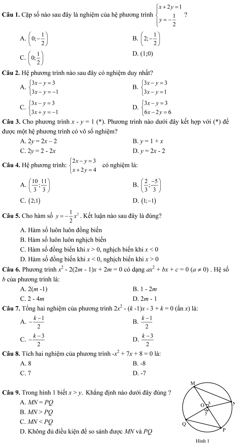 Trong các câu có các lựa chọn A, B, C, D chỉ khoanh tròn vào một chữ in hoa đứng trước câu trả lời đúng.