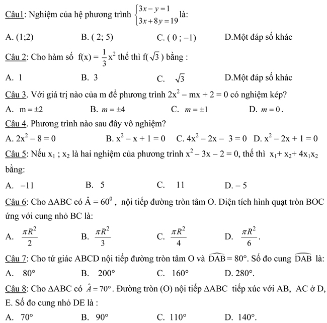 Trong mỗi câu từ câu 1 đến câu 10 đều có 4 phương án trả lời a, b, c, d; trong đó chỉ có một phương án đúng. Hãy khoanh tròn vào chữ cái đứng trước phương án đúng.