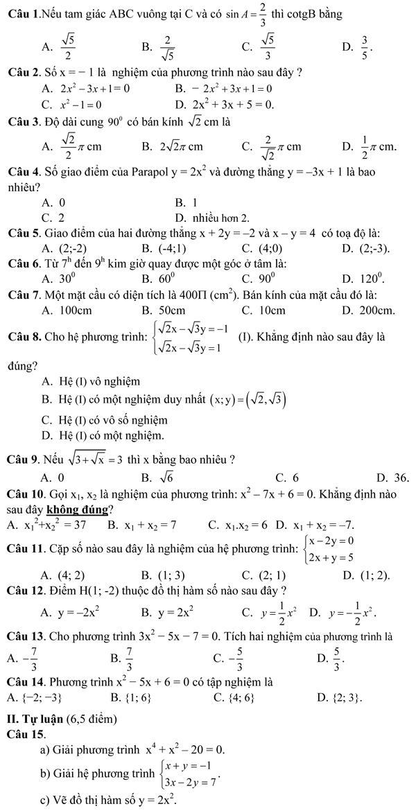 Trong mỗi câu từ câu 1 đến câu 14 đều có 4 phương án trả lời A, B, C, D; trong đó chỉ có một phương án đúng. Hãy khoanh tròn vào chữ cái đứng trước phương án đúng.