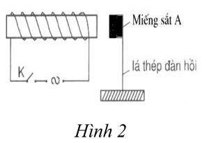 3. Khi cho dòng điện xoay chiều chạy vào cuộn dây dẫn ở hình 2 thì miếng sắt A ở trạng thái nào dưới đây?