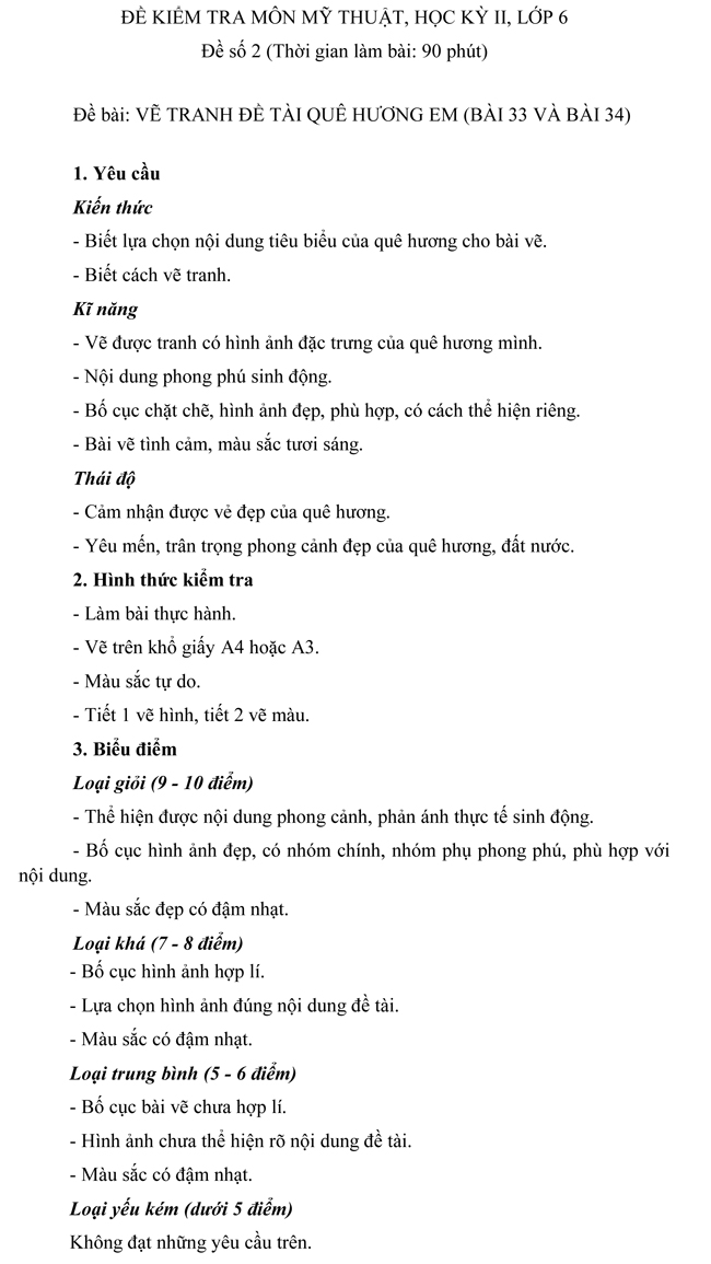 Đề kiểm tra học kì II môn Mỹ thuật dành cho học sinh THCS lớp 6 - Đề số 2
