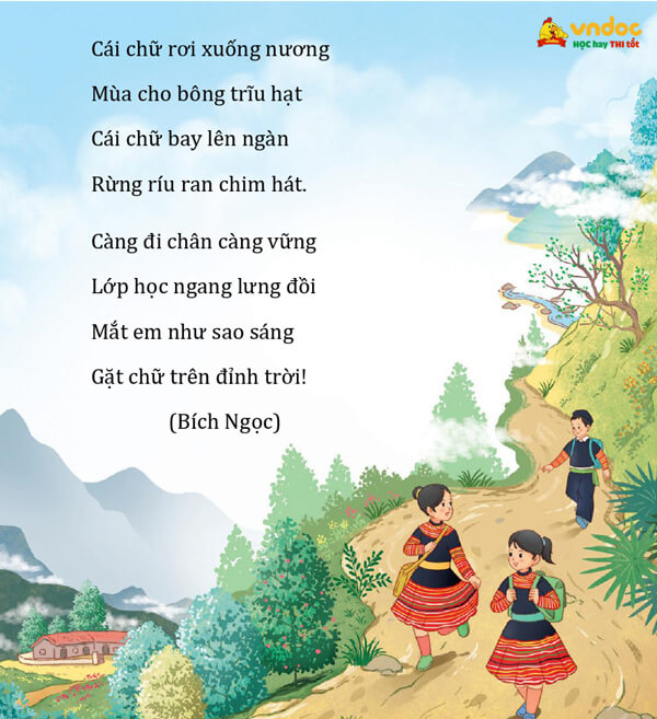Câu 4: Câu thơ “Gặt chữ trên đỉnh trời” chỉ hành động nào của bạn nhỏ? Chọn ý đúng: