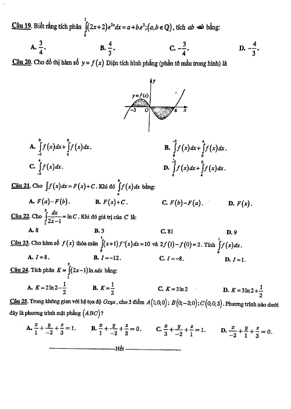 - Đề kiểm tra 1 tiết lớp 12 môn Toán Giải tích chương 3 năm 2018 - 2019 trường THPT An Thới - Kiên Giang