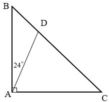 Vậy góc đỉnh A, cạnh AD, AC có số đo là: 90° - 24° = 66°