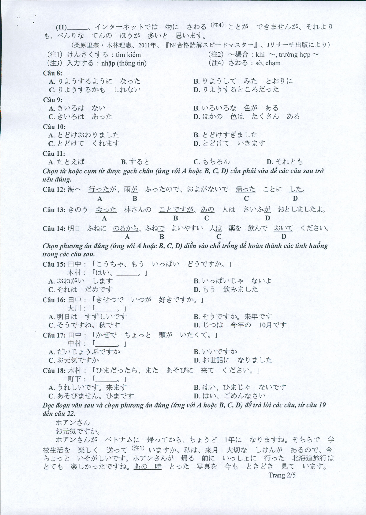 Xem thêm: Đáp án 24 mã đề thi tiếng Nhật THPT Quốc gia 2022 HOT