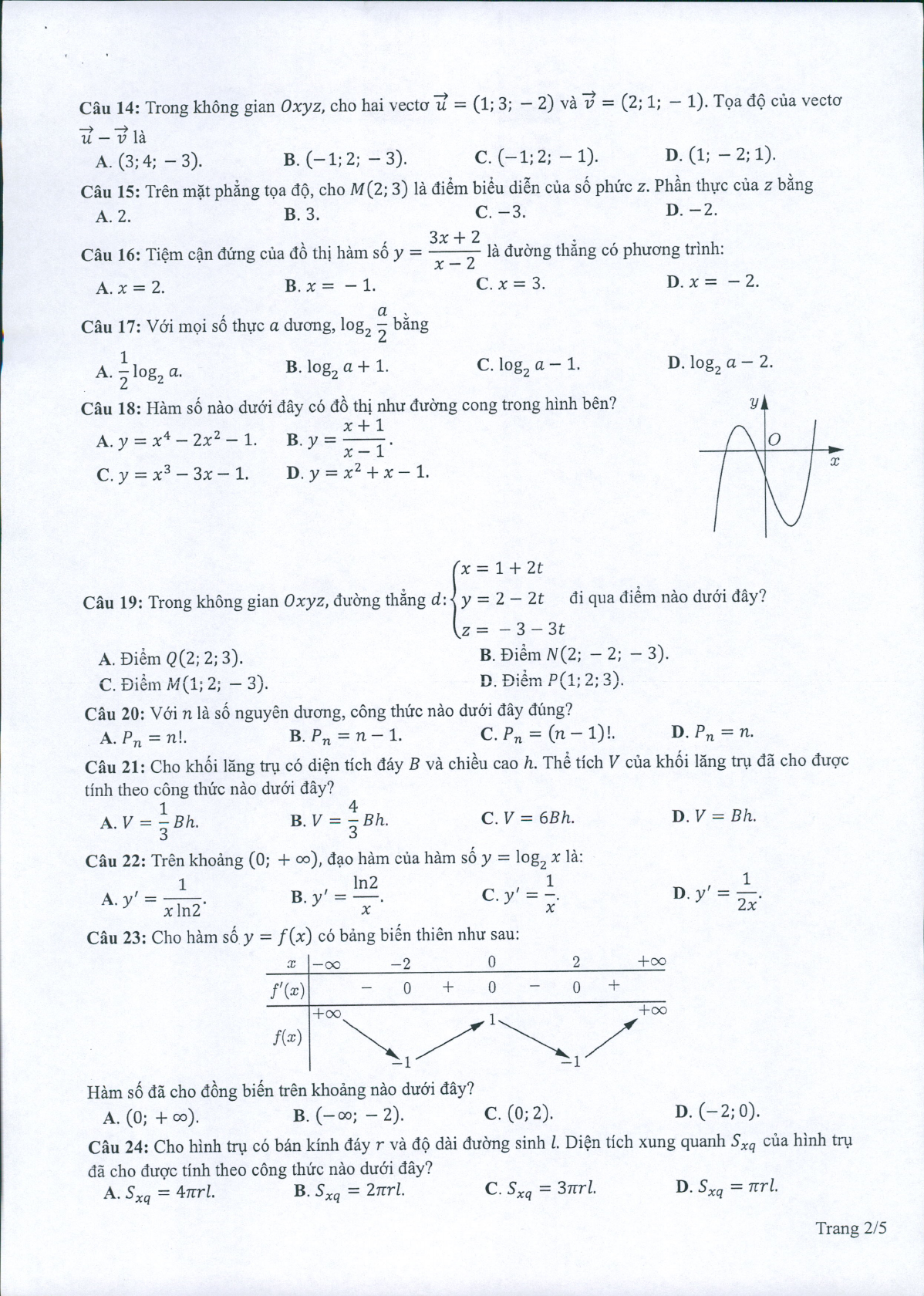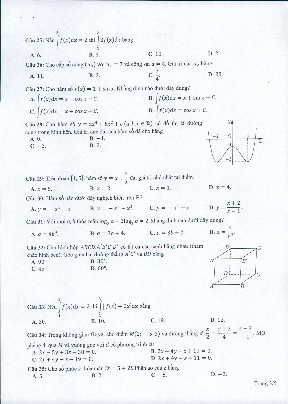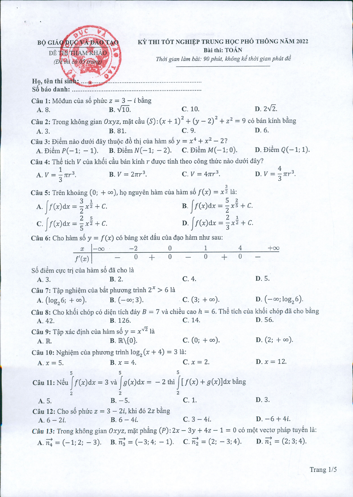 Đề minh họa thi THPT Quốc gia 2022 môn Toán
