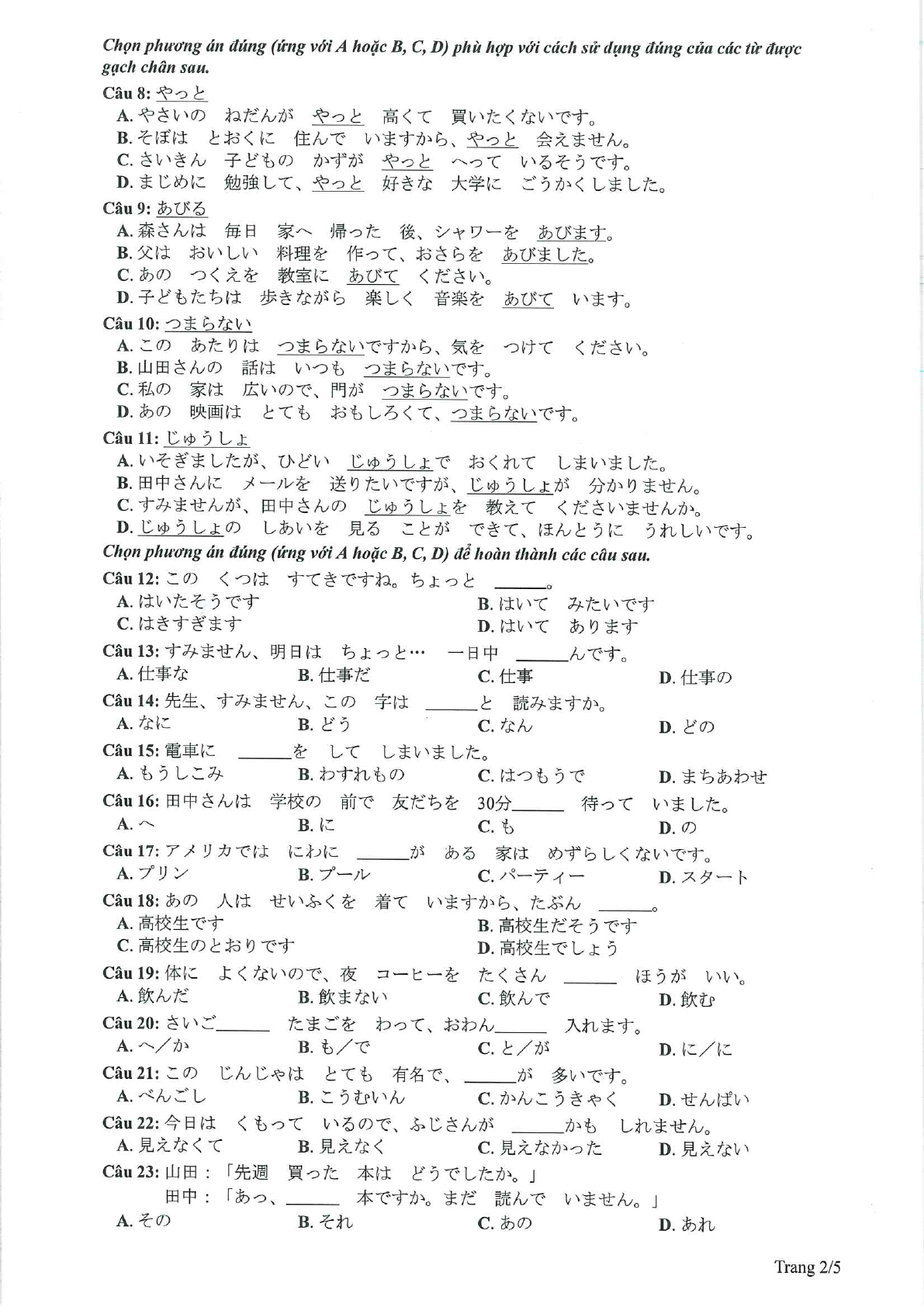 Đề minh họa 2023 môn tiếng Nhật