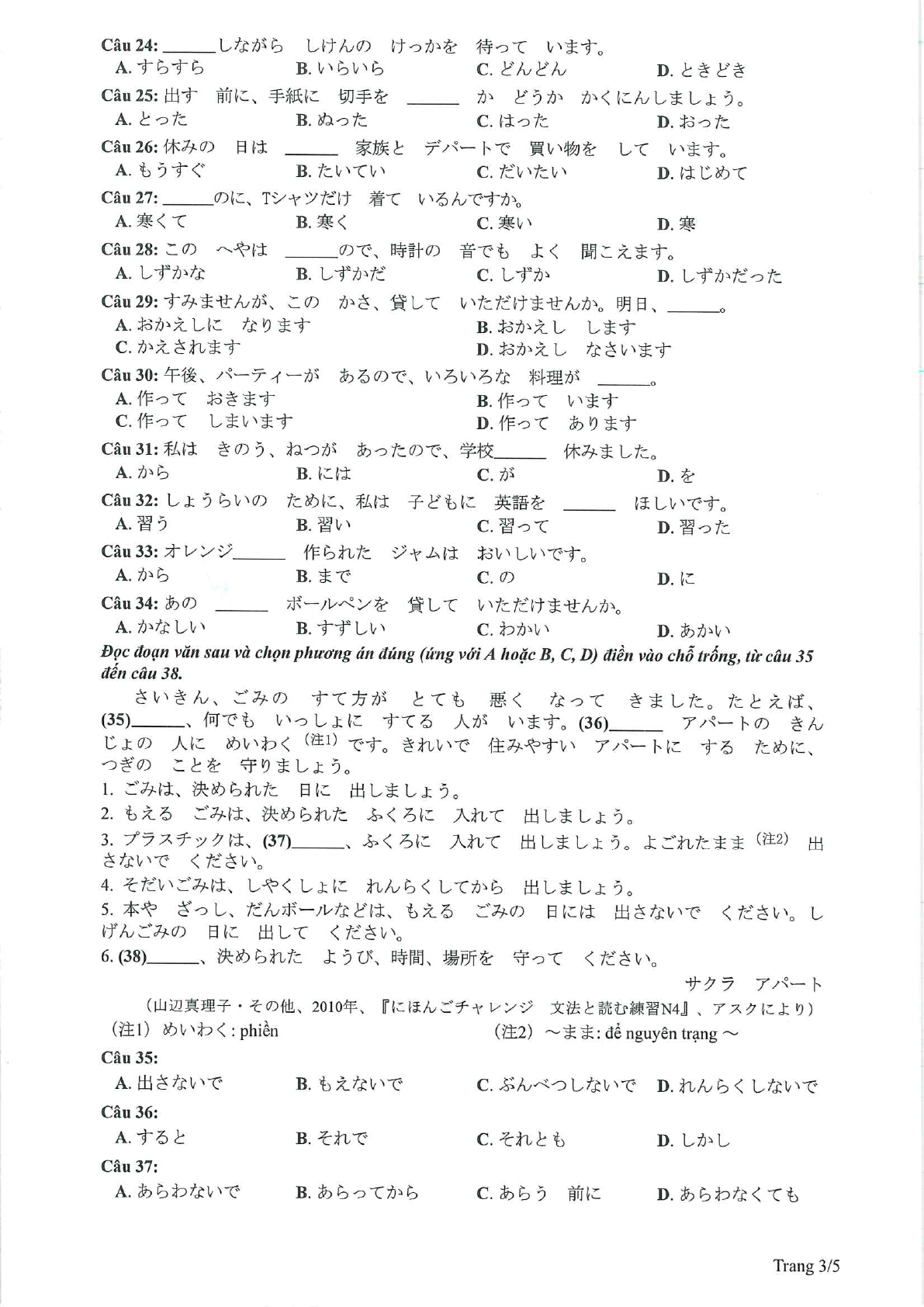 Đề thi tham khảo chính thức năm 2023 môn Tiếng Nhật