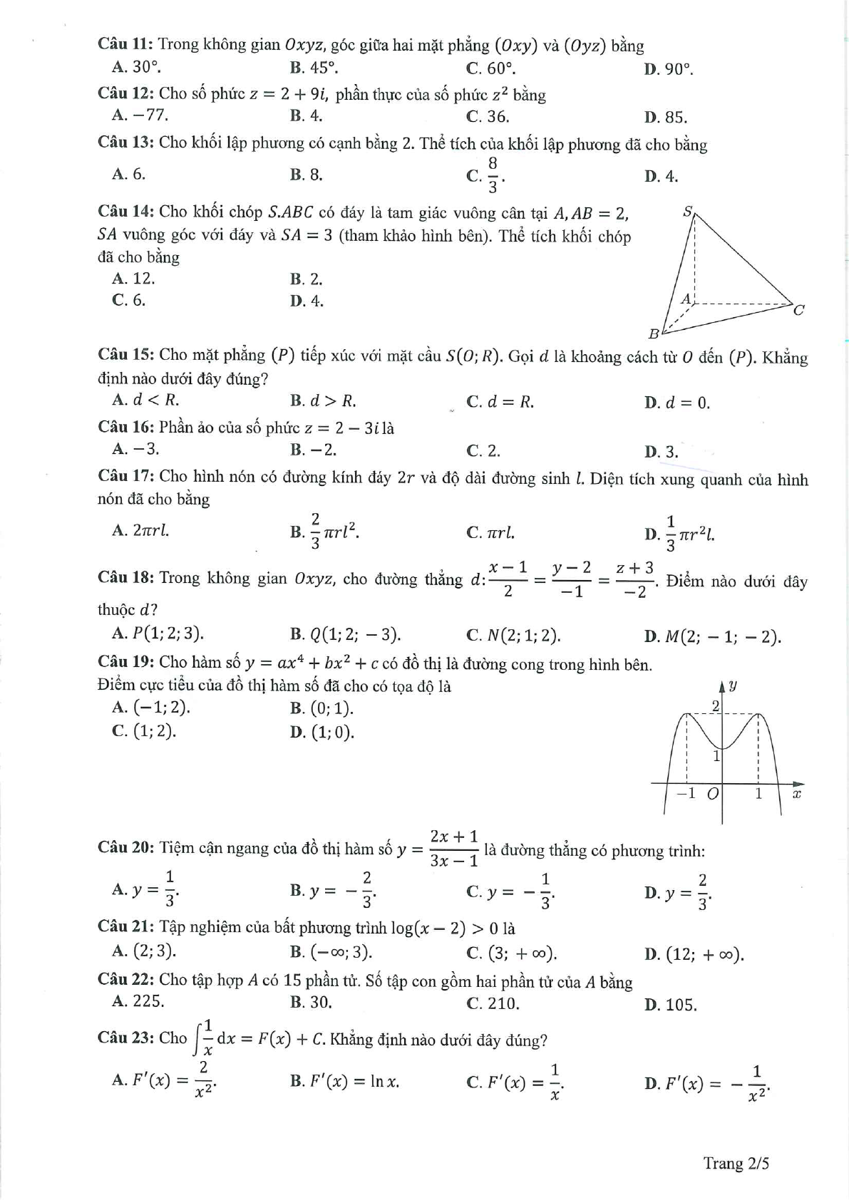 Đề minh họa 2023 môn Toán được VnDoc.com tổng hợp và xin gửi tới bạn đọc cùng tham khảo. Đề thi được xây dựng theo cấu trúc đề thi trắc nghiệm gồm có 50 câu hỏi trắc nghiệm, thí sinh làm bài trong thời gian 90 phút. Mời các bạn cùng làm đề thi dưới đây nhé.