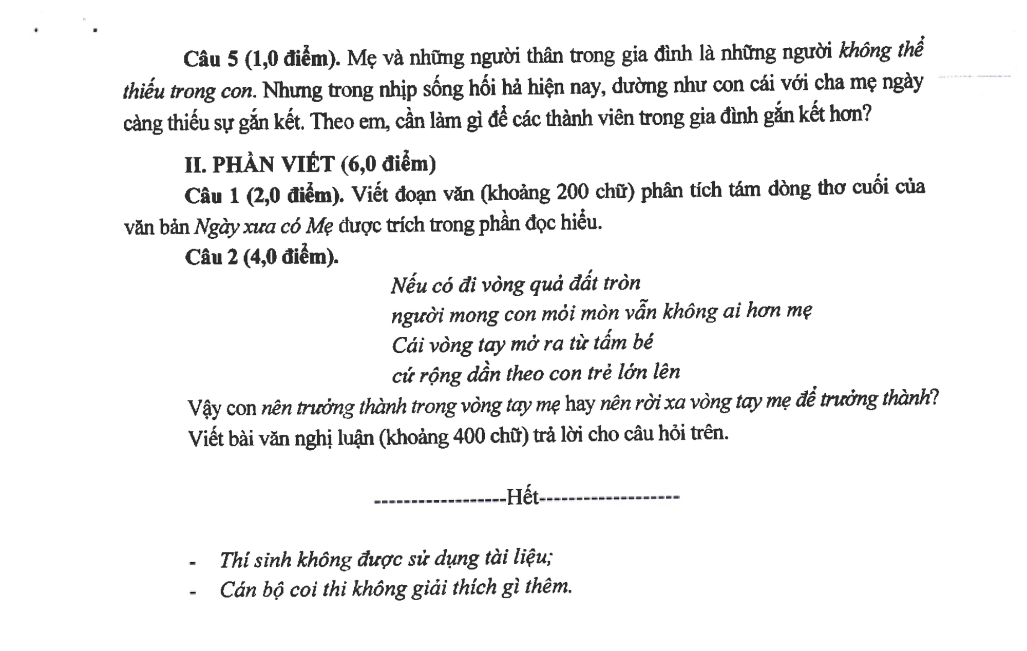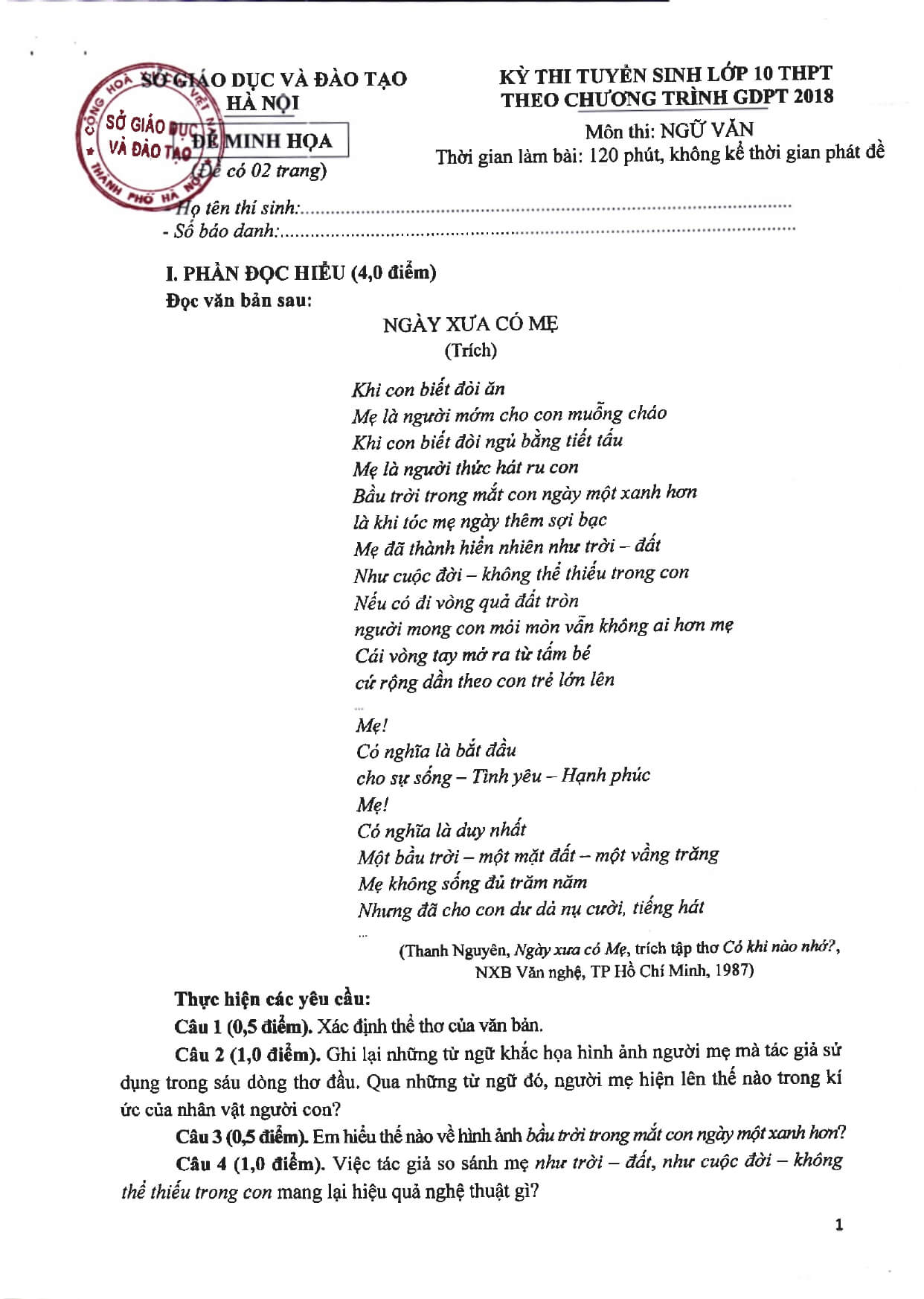 1. Đề minh họa môn Văn thi vào lớp 10