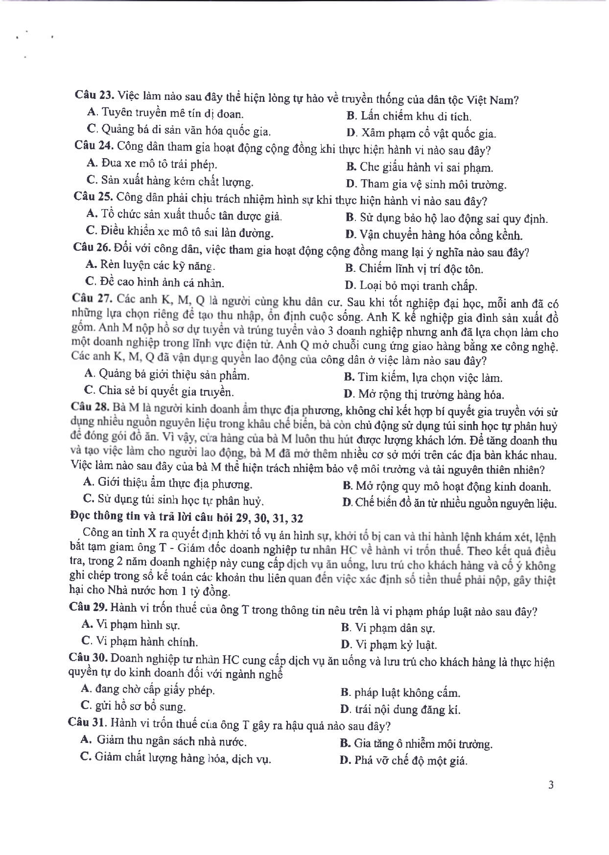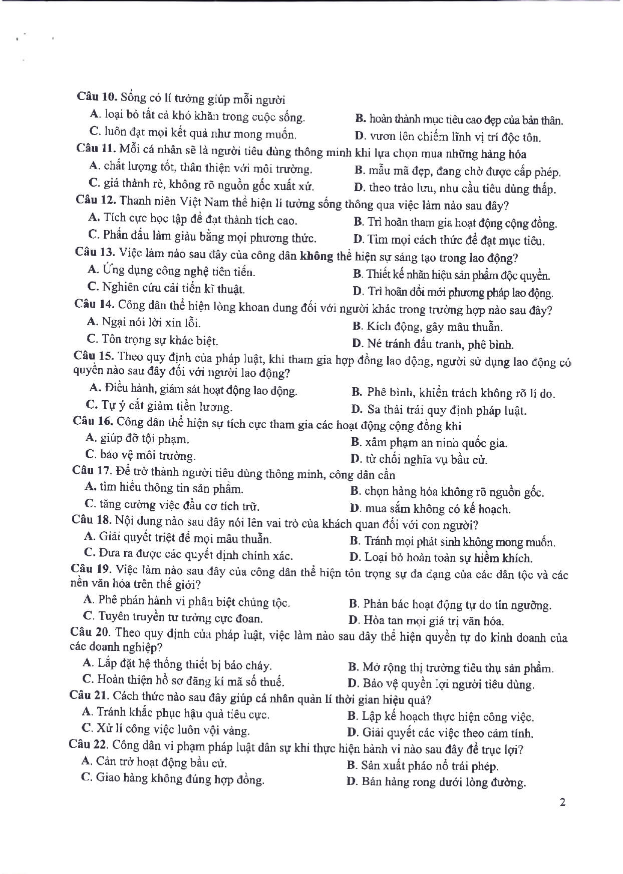 2. Đề minh họa thi vào 10 môn Giáo dục công dân