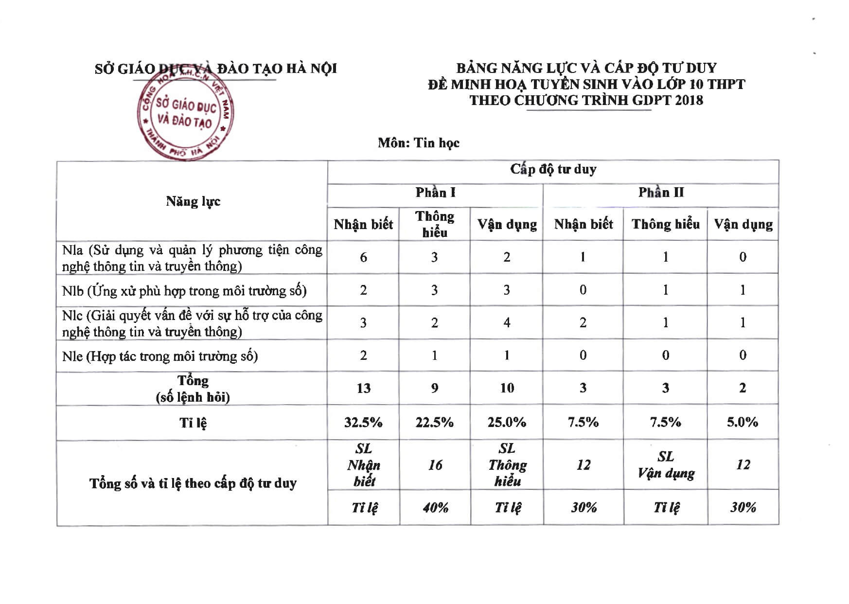 1. Cấu trúc đề thi vào 10 môn Tin học