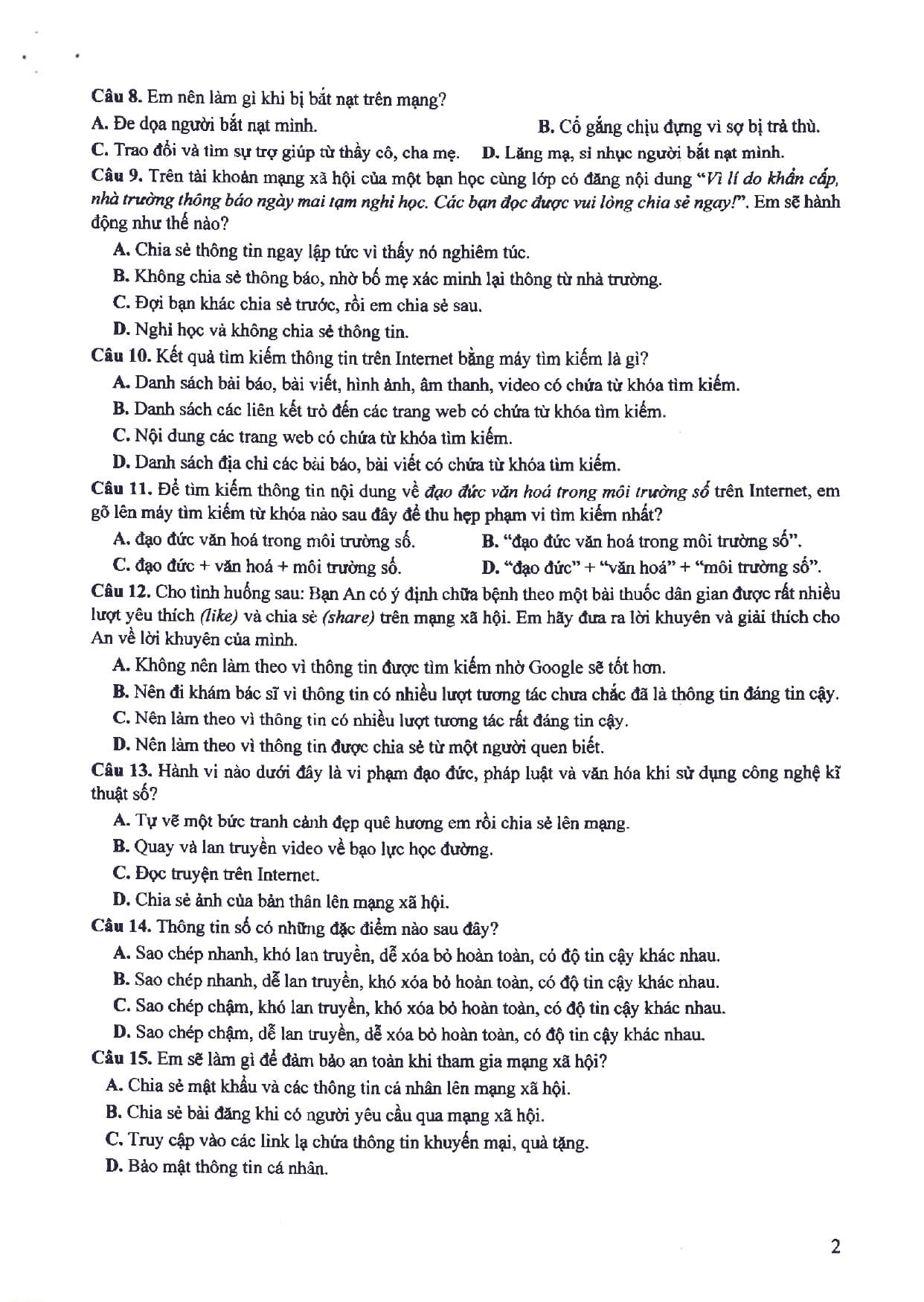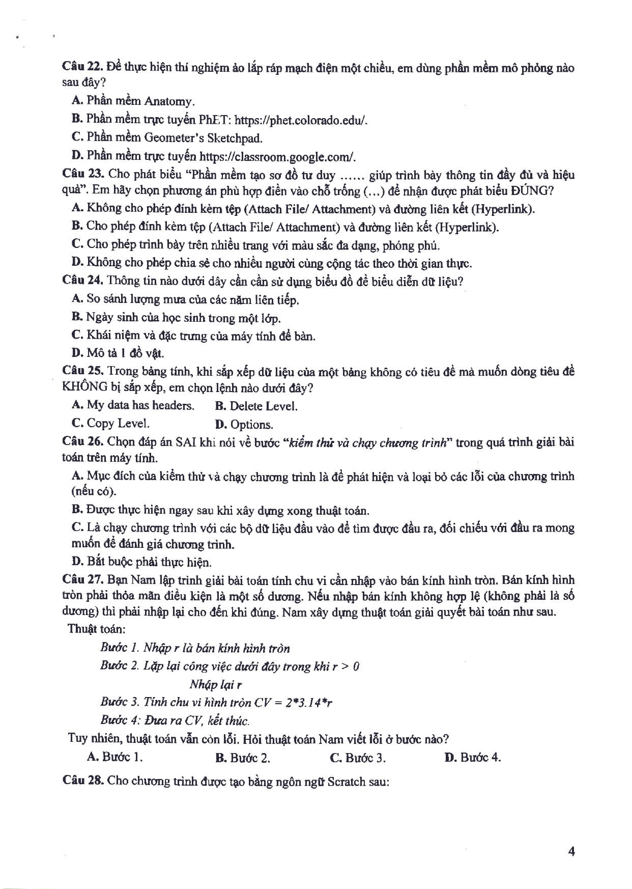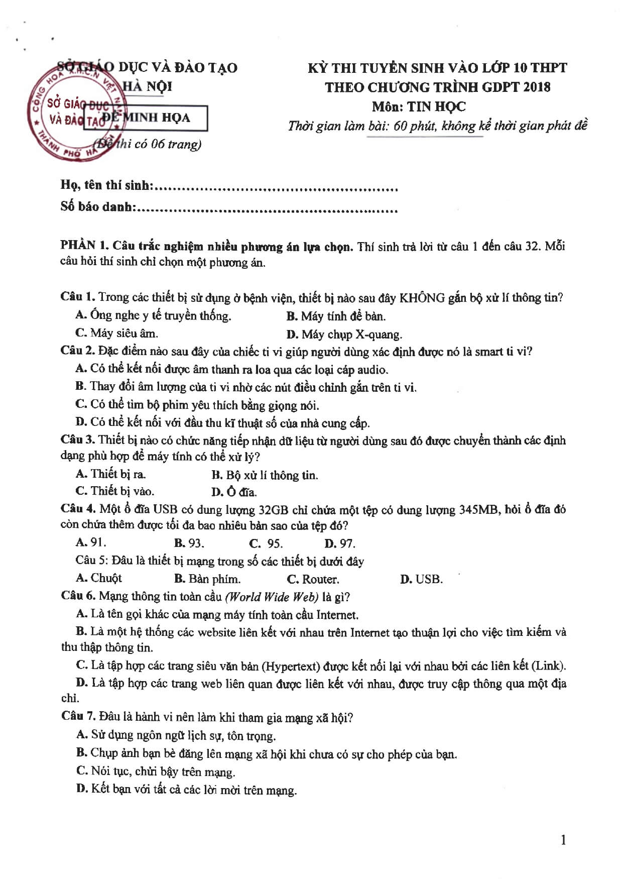2. Đề minh họa thi vào 10 môn Tin học
