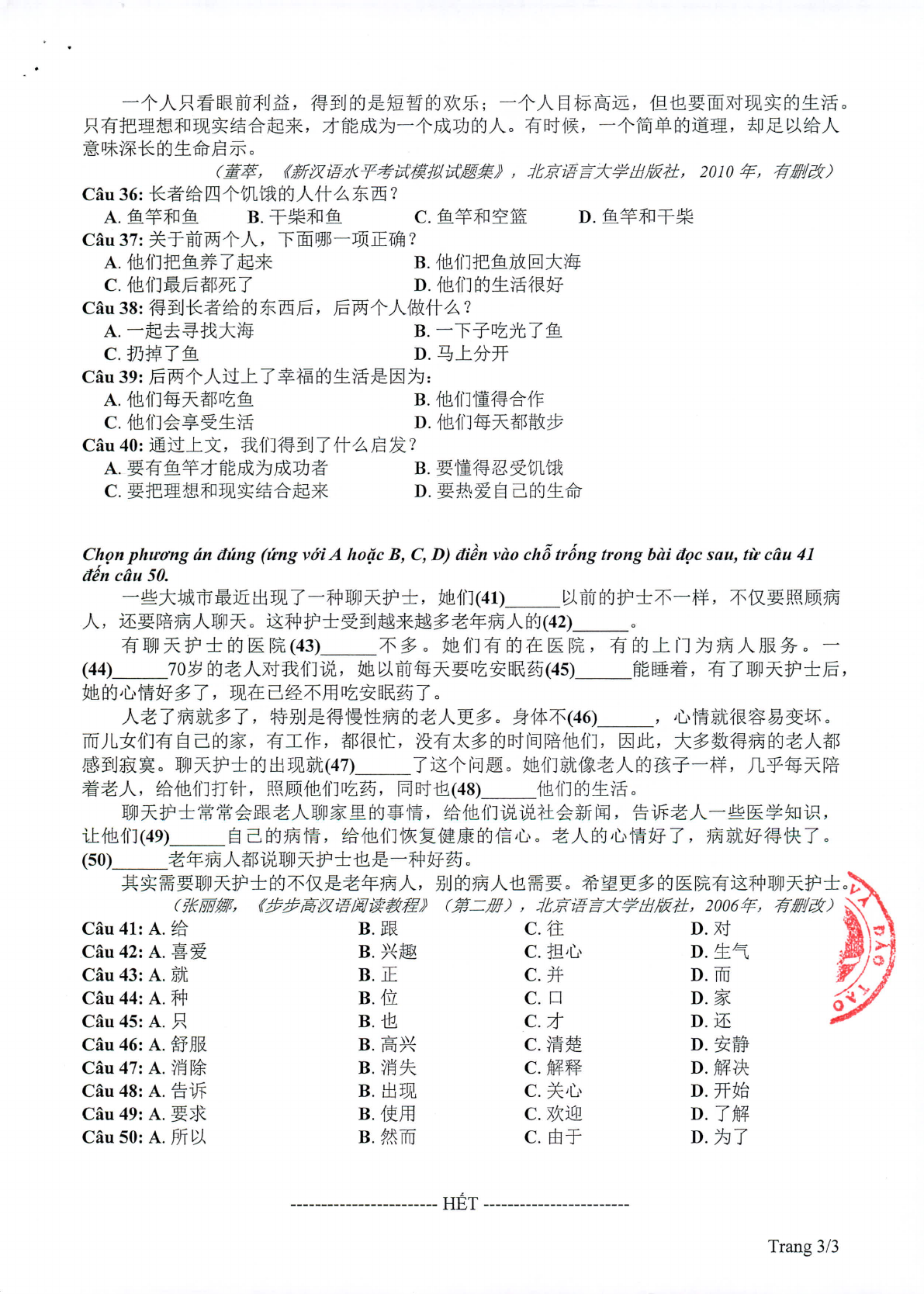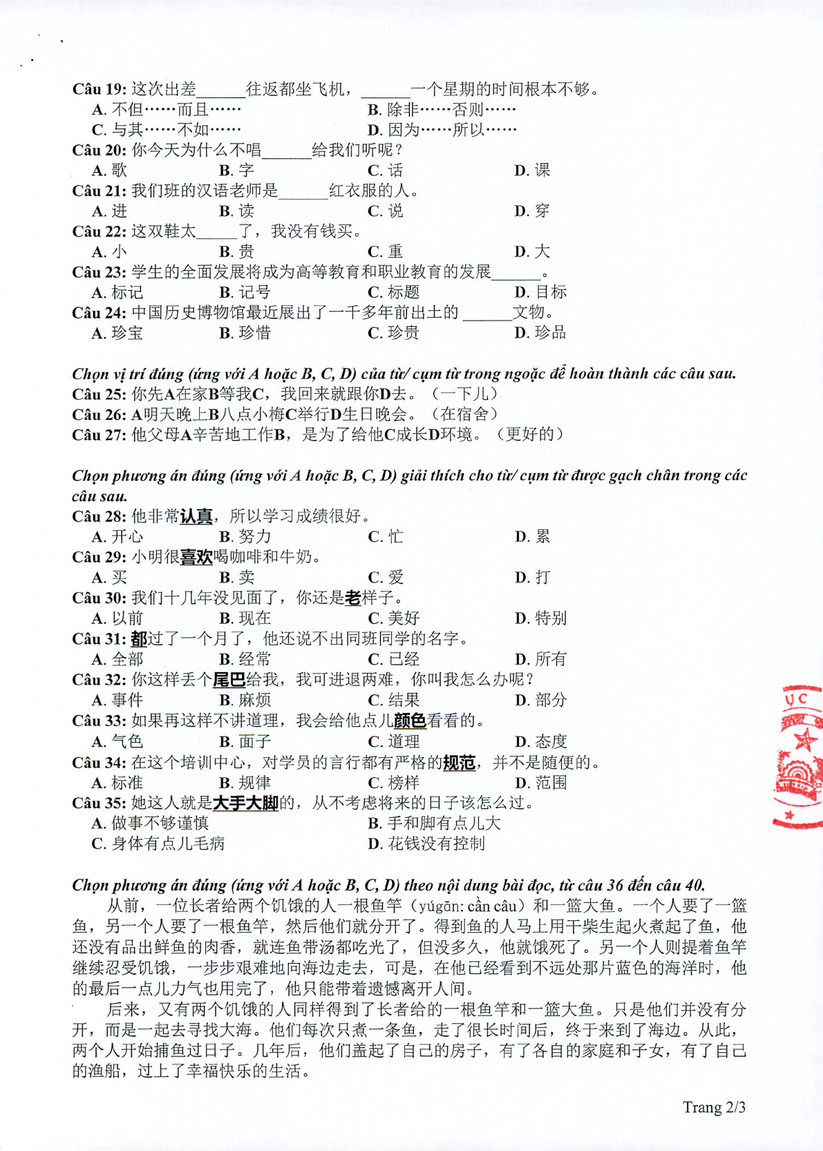 Đề minh họa tiếng Trung Quốc năm 2020