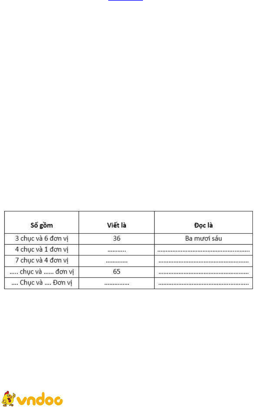 – Các số đến 100; Đọc, viết các số có một chữ số, số có hai chữ số, phân tích số