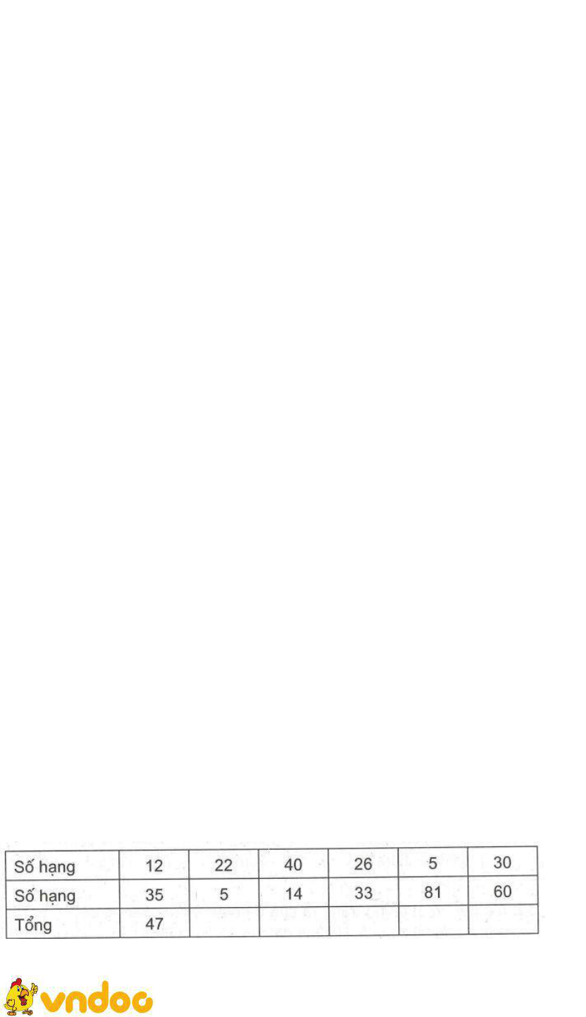 – Số hạng, tổng: Nhận biết tên gọi thành phần và kết quả phép tính; tìm tổng