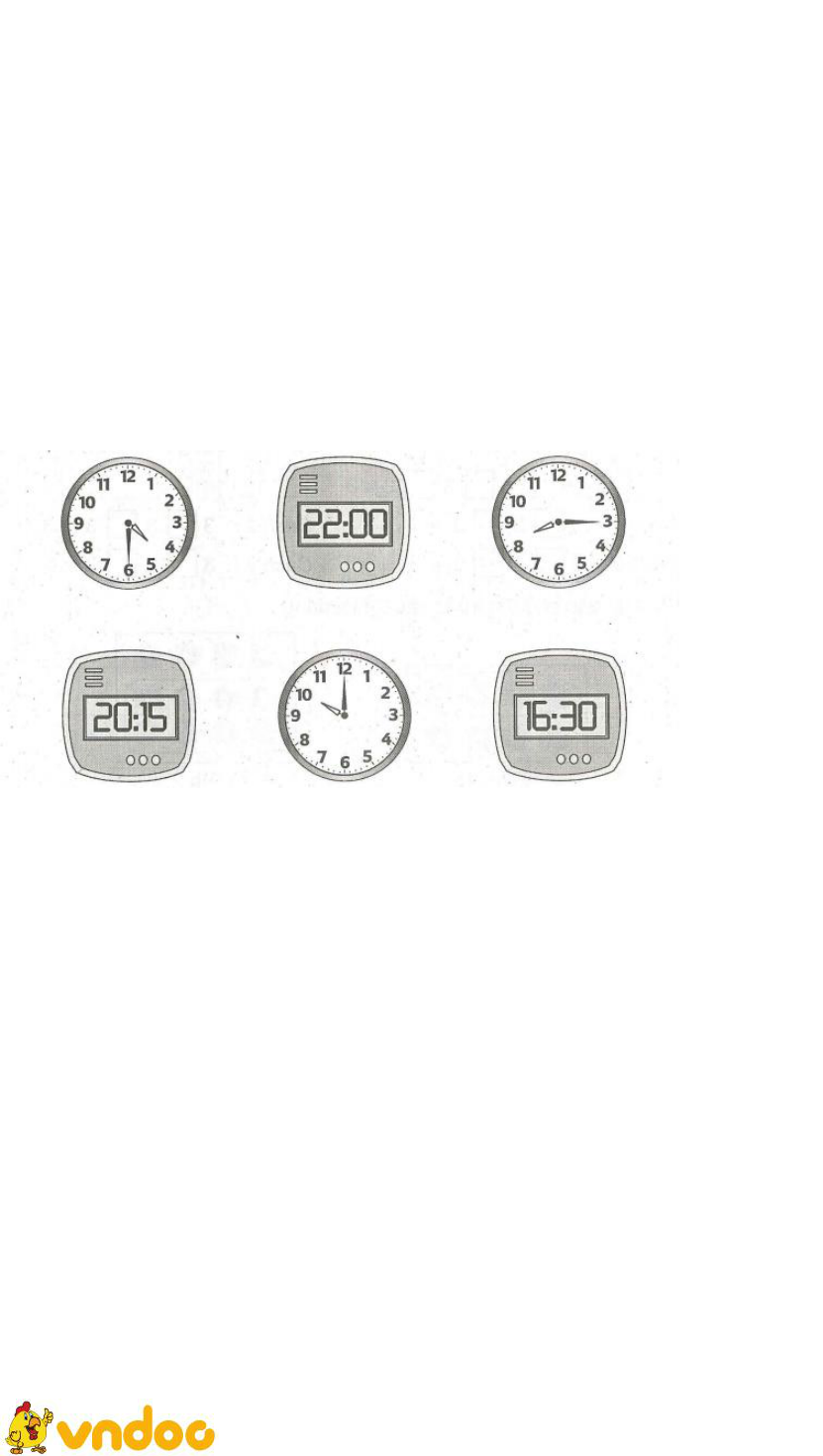 8. Nối hai đồng hồ chỉ cùng giờ vào buổi chiều hoặc buổi tối: