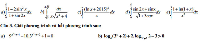ĐỀ THI HỌC KÌ 2 – Năm học 2014-2015 Môn TOÁN Lớp 12 Thời gian làm bài 120 phút |