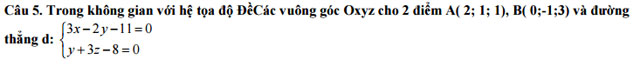 a. Viết phương trình mặt phẳng (P ) đi qua trung điểm I của AB và vuông góc với AB. Gọi K là giao điểm của đường thẳng d với mặt phẳng P), chứng minh rằng d vuông góc với IK.