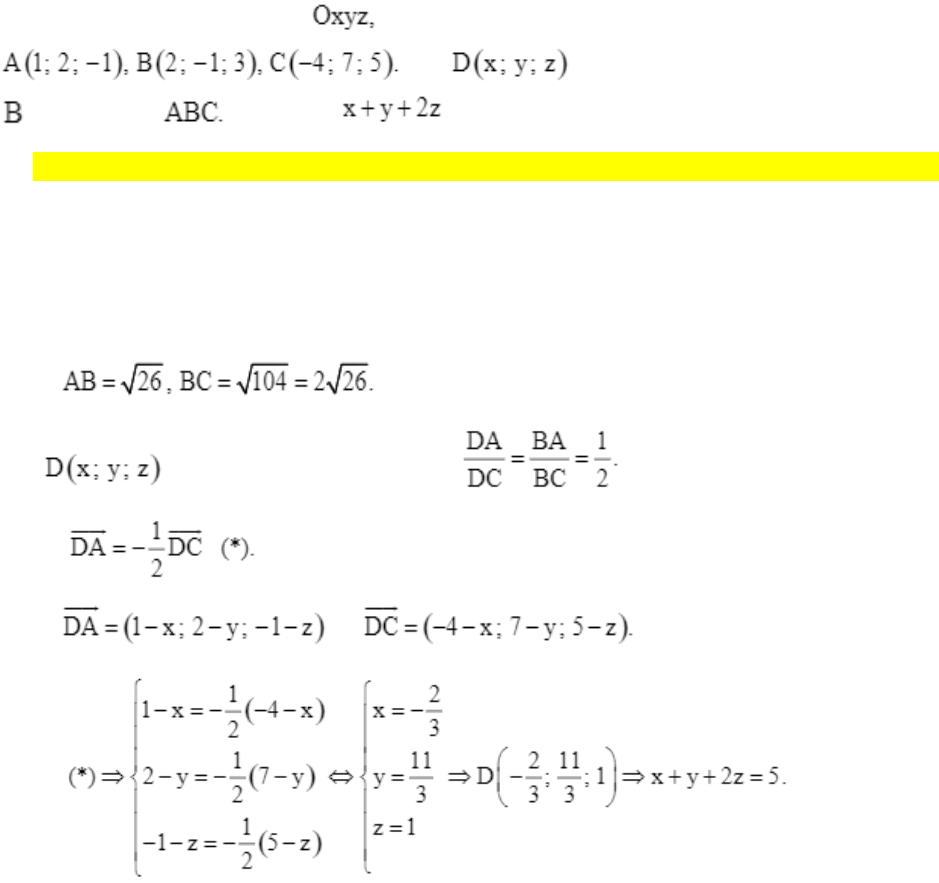 Trong không gian với hệ tọa độ cho tam giác ABC có