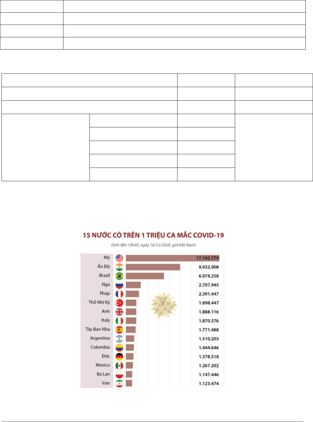 n ngày 16/12/2020 Quc gia nào có s ca mc Covid 19 nhiu nht th gii?